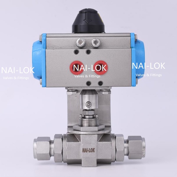 6000psi 1/4" OD SS316 Integral 2-Way Pneumatic Ball Valve for High Pressure Applications