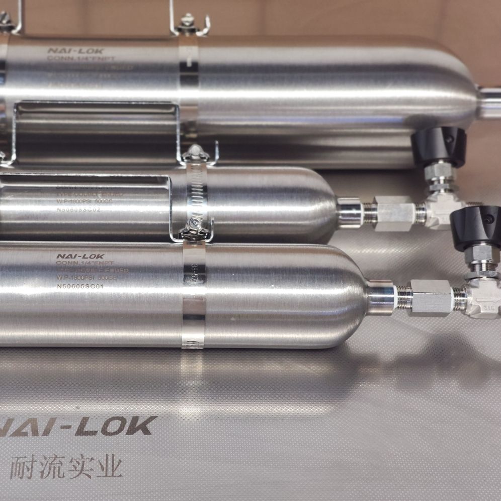 NAI-LOK 1000ml 3000psi SS316 Sample Cylinder with Integrated Needle Valves | Double Ended, High-Pressure Gas Sampling Cylinder