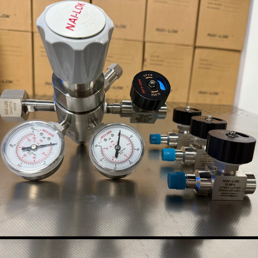 NAI-LOK Dual Stage Pressure Regulator with Extended Diaphragm Valve, Relief Valve & Cylinder Connection | Stable Outlet for Gas Control Systems